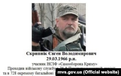 «Незважаючи на тимчасову відсутність доступу до місць вчинення злочину, слідчим поліції вдалося встановити похвилинну картину переміщення потерпілого, а також трьох осіб, які безпосередньо здійснили викрадення Решата Аметова з площі «Ради Міністрів». Ними виявилися 2 бійці «Самооборони Криму» 1975 і 1986 р.н.., які діяли під керівництвом колишнього військовослужбовця Збройних Сил Росії Скрипніка Євгена Володимировича 1966 р.н..», – йдеться у повідомленні.
