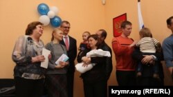 У Сімферополі дітям і немовлятам, народженим 11 квітня 2014 року, урочисто вручили примірники нової Конституції Криму, ухваленої після анексії півострова Росією.