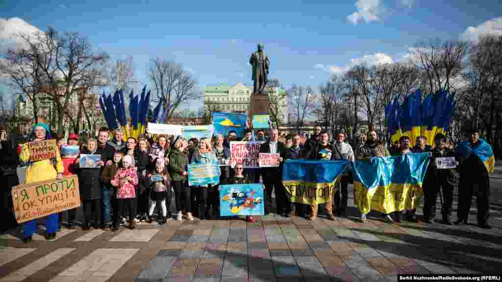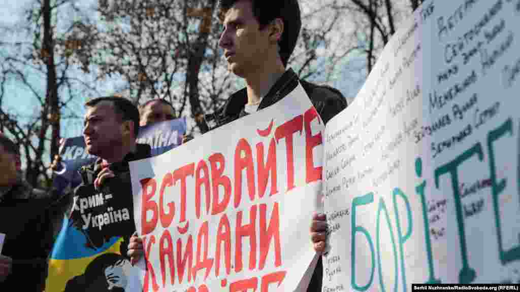 У Києві в парку імені Тараса Шевченка відбулася акція солідарності з кримчанами. Організатори заходу повідомляли, що виходять на акцію 9 березня, бо щороку в день народження українського поета Шевченка «кримчани демонструють свою солідарність і підтримку незалежної України, ризикуючи потрапити під прес репресивної машини».