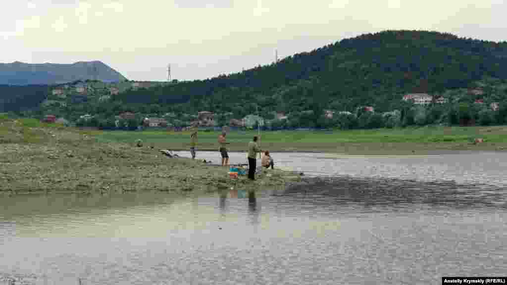 Зливи, що пройшли на півострові, трохи наповнили Сімферопольське водосховище. Тепер його береги вкриває густий килим трави.